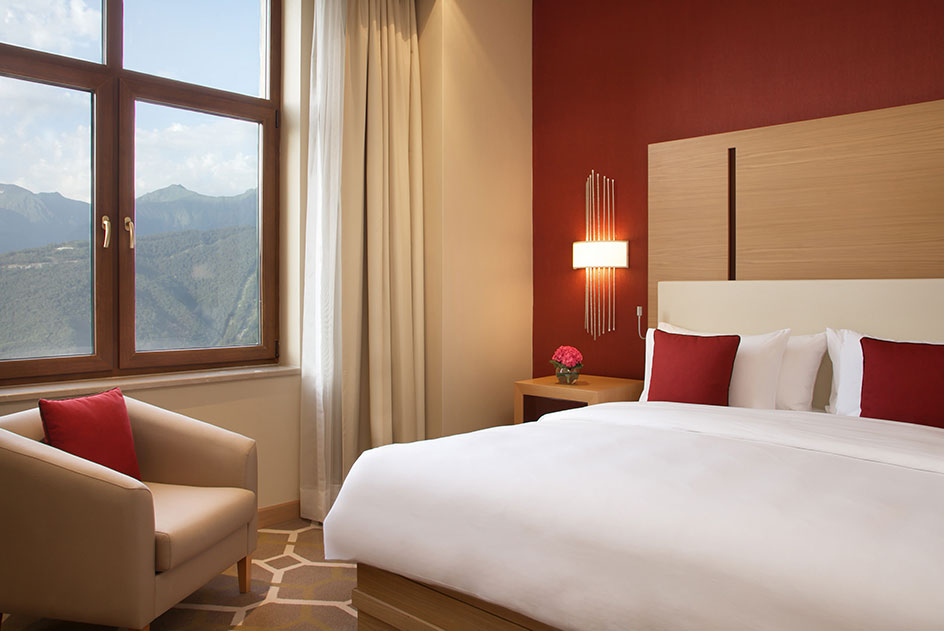 Solis Sochi Hotel is located on a sunny mountainside surrounded by the magnificent Caucasus Mountains. The 5 star hotel offers 120 first class rooms with enchanting panoramic views. Rooms range in size from 31 m2 to 487 m2 and combine elegance, contemporary design, comfort and high-tech amenities The hotel is situated in the center of Sochi mountain cluster in the resort of Gorky Gorod with direct access to the ski slopes. Our dedicated ski-concierge will assist you with equipment and its storage, booking of ski lessons, slope condition information, maps and other services. Before and after conquering the slopes drop in our Echo Ski Café for some rest and try authentic Alpine cuisine.